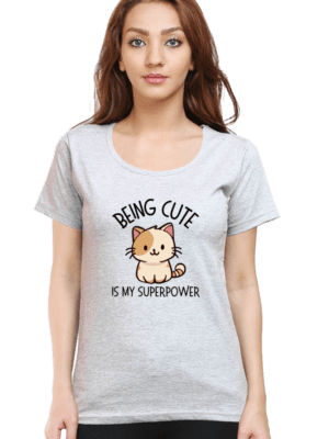 Embrace your inner superhero with this adorable t-shirt! Featuring a bold, graphic design that says “Being Cute is my Superpower,” this tee is perfect for adding a touch of fun to any outfit.