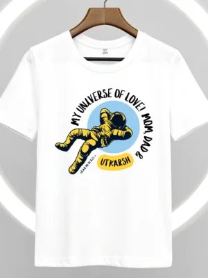 ❤️ “My Universe of Love!” This customized name t-shirt for kids features your child’s name alongside Mom, Dad, and siblings’ names, creating a unique and heartwarming keepsake.