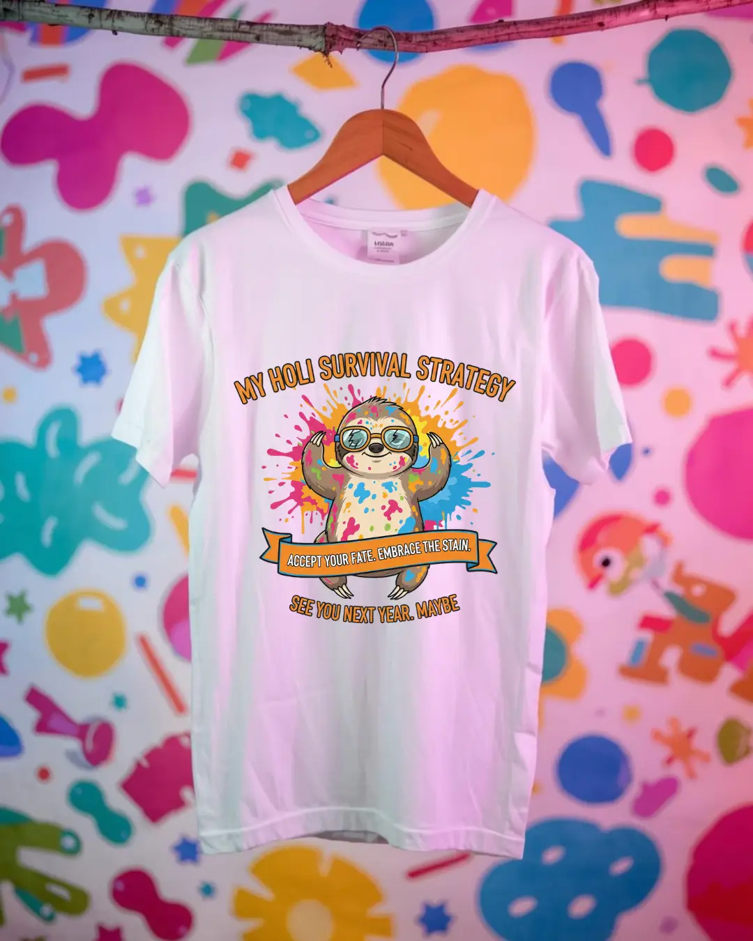 Celebrate Holi in style and comfort with the Happy Holi T Shirt Sloth. Featuring a cute sloth design, this t-shirt keeps you cozy and festive all day.