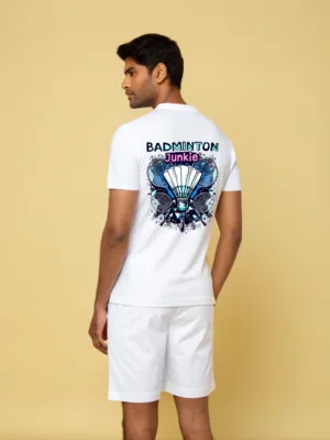 Addicted to badminton? 🏸 Our Men’s White Badminton Junkie Tshirt is the perfect fit.
