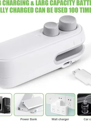 This bag sealer features a built-in high-capacity battery. Unlike traditional heat sealing machines, this device is more powerful and environmentally friendly, as it doesn’t require battery replacements!