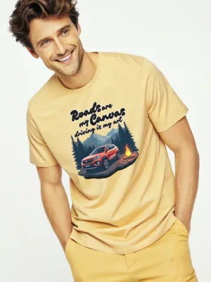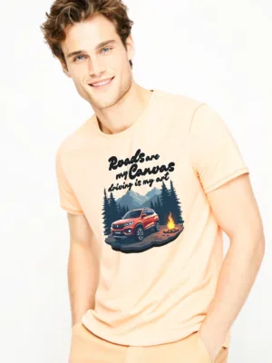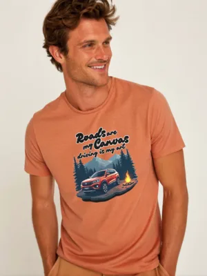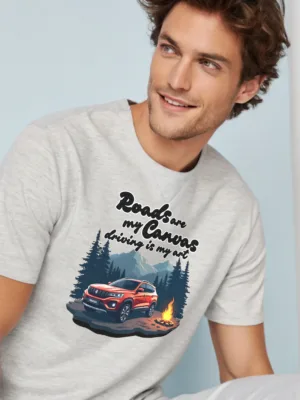 Hit the road and leave your mark with our men’s adventure t shirt. 🛣️ Our Men’s Grey “Road are my Canvas, Driving is my Art” T-shirt is for the true driving enthusiast.