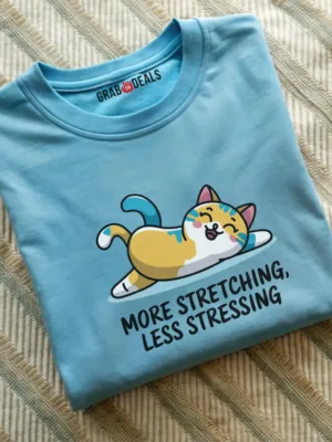 Designed for the yogi who values comfort and style, our More Stretching Less Stressing t-shirt is the perfect addition to your activewear wardrobe. Crafted from soft, bio-washed 100% cotton, this top offers exceptional breathability and moisture-wicking properties, keeping you cool and dry throughout your practice.