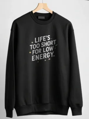 Live life to the fullest with our Unisex Black "Life's Too Short for Low Energy" Sweatshirt. ⚡️