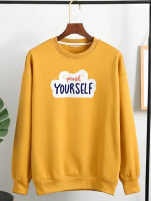 Push your limits, not your style. 💪 Our Unisex Mustard Yellow "Push Yourself" Sweatshirt is the perfect blend of comfort and motivation.